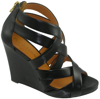 Sophisticated and sexy strappy sandals on 4 inches high wedge. Back Zipper, leather upper, linings and sole. Imported in full and half sizes 6-10.Pour La Victoire Tarissa in Black. Wedge is 4" high. Imported in full and half sizes >> Learn more »